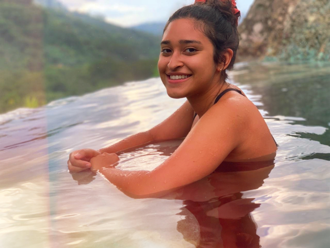 Then we got back in the van and headed up to Hacienda Orosi. When we walked up to the hot springs, the whole thing seemed impossibly beautiful. We could see so far across the mountains and down into the city, and there was nothing blocking our view from the hot spring pools, which themselves were surrounded by rocks and plants that made them fit right in. The pools ranged in temperature from 96 to 102 degrees and were heated by water from a natural hot spring nearby which is too hot to bathe in alone without being combined with colder freshwater.